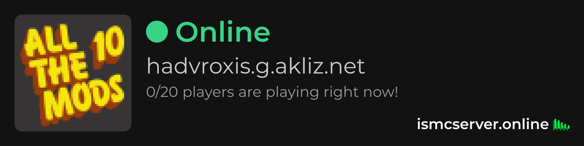 Dark Rounded image: https://ismcserver.online/hadvroxis.g.akliz.net/widget?dark&rounded