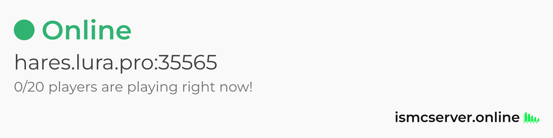 Dark theme: https://ismcserver.online/hares.lura.pro:35565/widget?dark=true