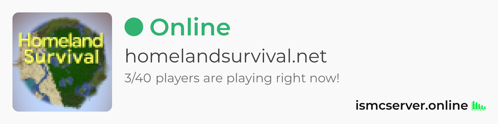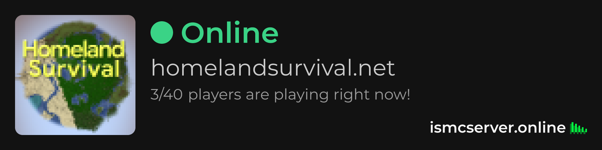 Dark Rounded image: https://ismcserver.online/homelandsurvival.net/widget?dark&rounded