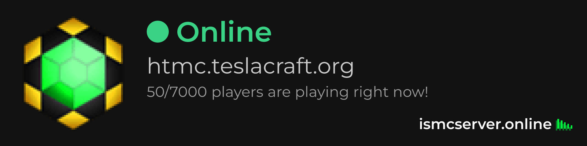 Dark Rounded image: https://ismcserver.online/htmc.teslacraft.org/widget?dark&rounded