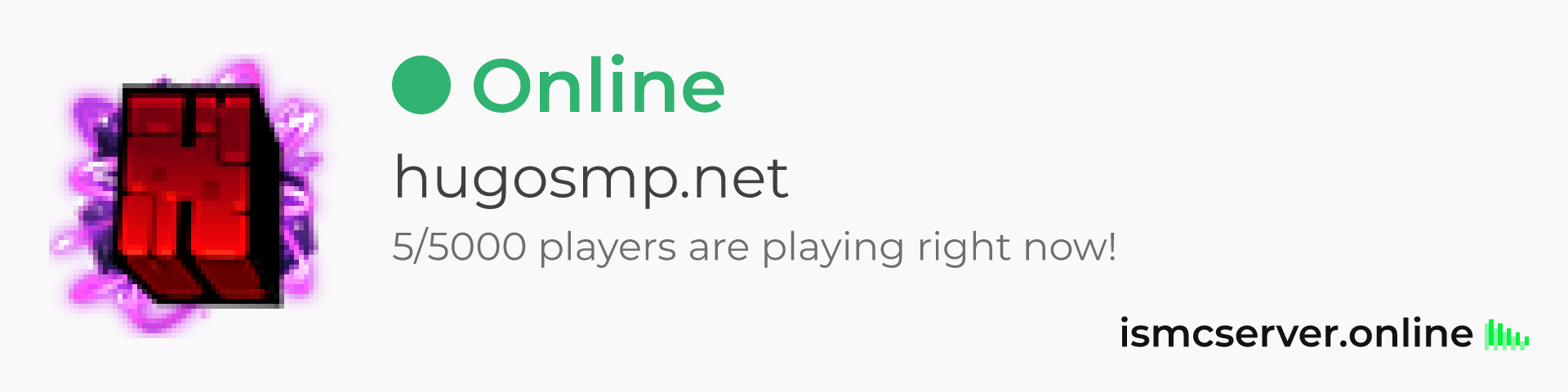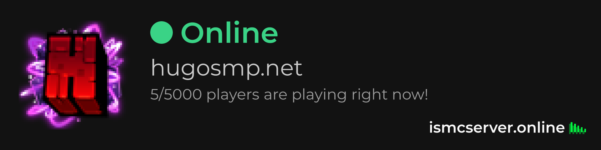 Dark Rounded image: https://ismcserver.online/hugosmp.net/widget?dark&rounded