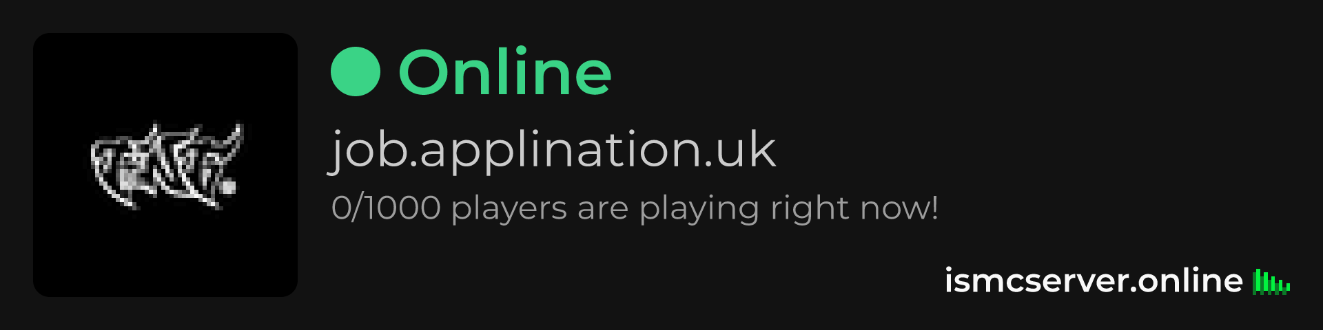 Dark theme: https://ismcserver.online/job.applination.uk/widget?dark=true