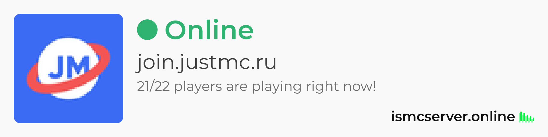 Dark theme: https://ismcserver.online/join.justmc.ru/widget?dark=true