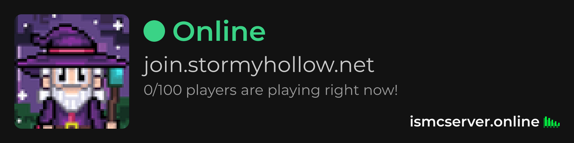 Dark Rounded image: https://ismcserver.online/join.stormyhollow.net/widget?dark&rounded