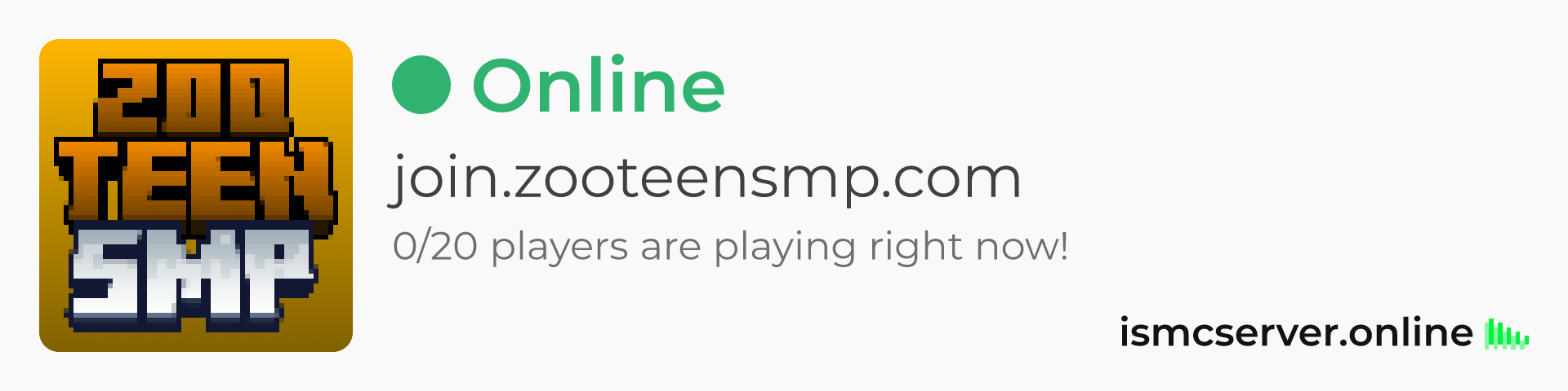 Dark Rounded image: https://ismcserver.online/join.zooteensmp.com/widget?dark&rounded
