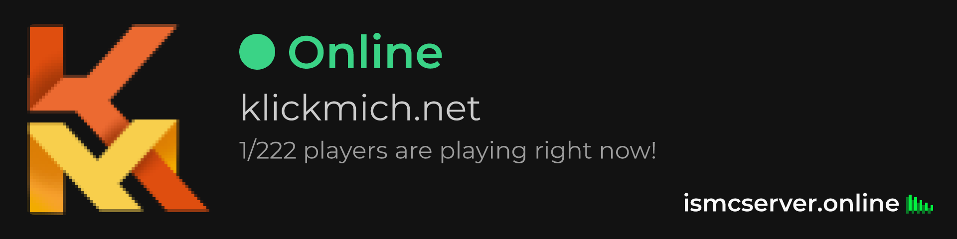 Dark theme: https://ismcserver.online/klickmich.net/widget?dark=true