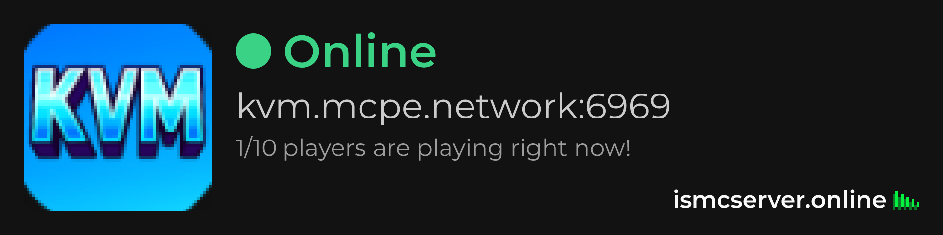 Dark Rounded image: https://ismcserver.online/kvm.mcpe.network:6969/widget?dark&rounded