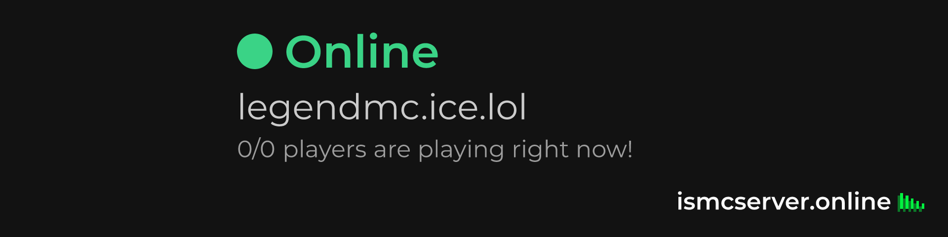 Dark Rounded image: https://ismcserver.online/legendmc.ice.lol/widget?dark&rounded
