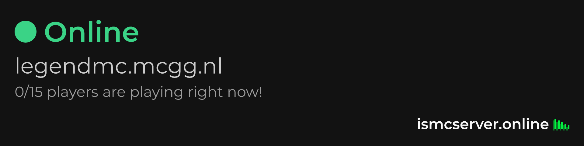 Dark Rounded image: https://ismcserver.online/legendmc.mcgg.nl/widget?dark&rounded