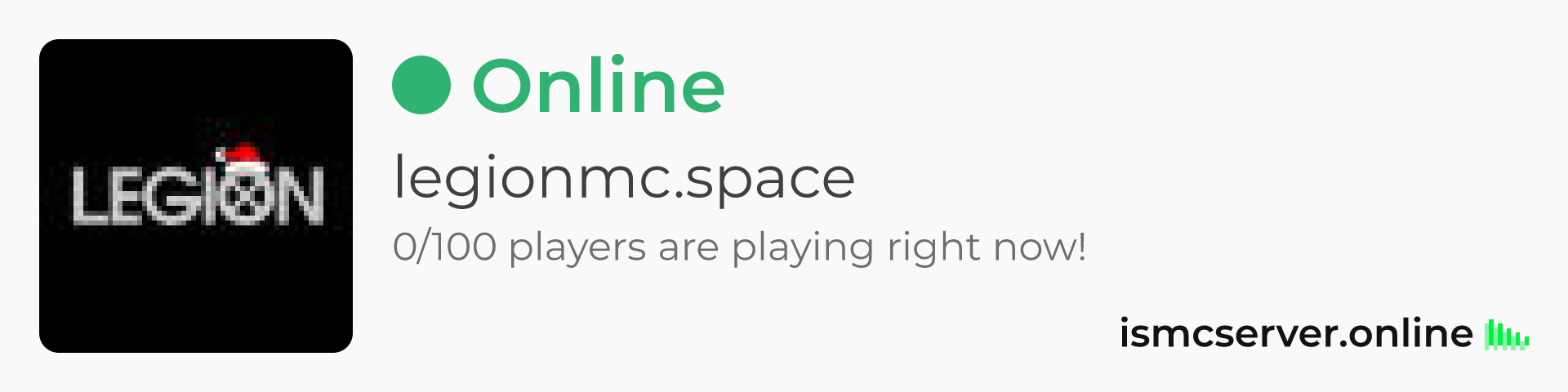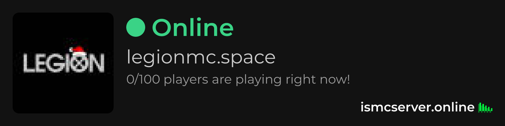 Dark Rounded image: https://ismcserver.online/legionmc.space/widget?dark&rounded