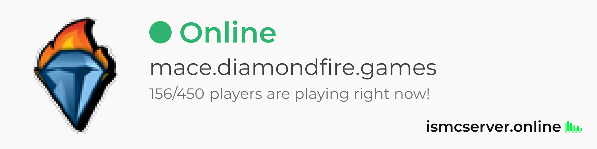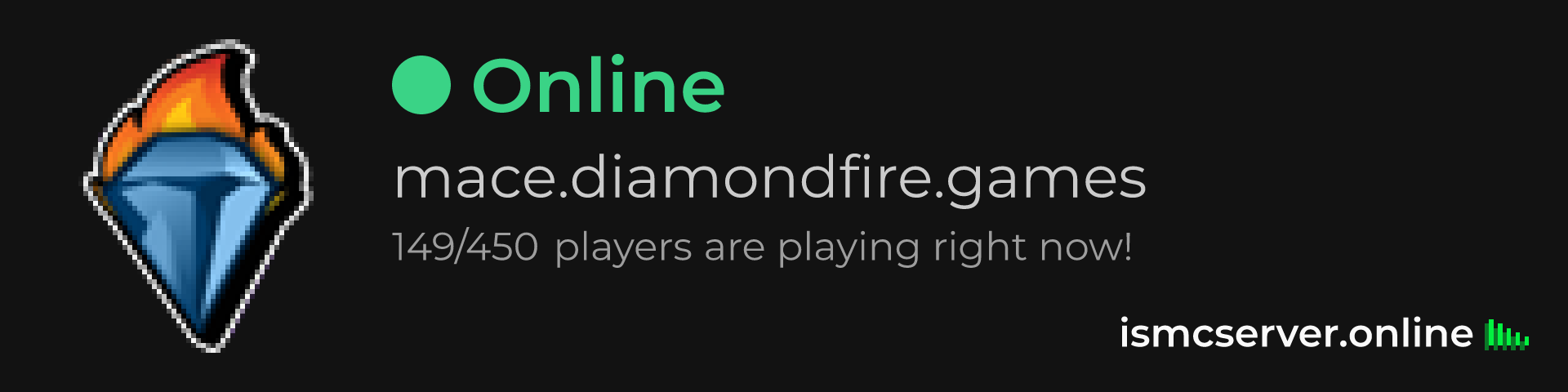 Dark Rounded image: https://ismcserver.online/mace.diamondfire.games/widget?dark&rounded