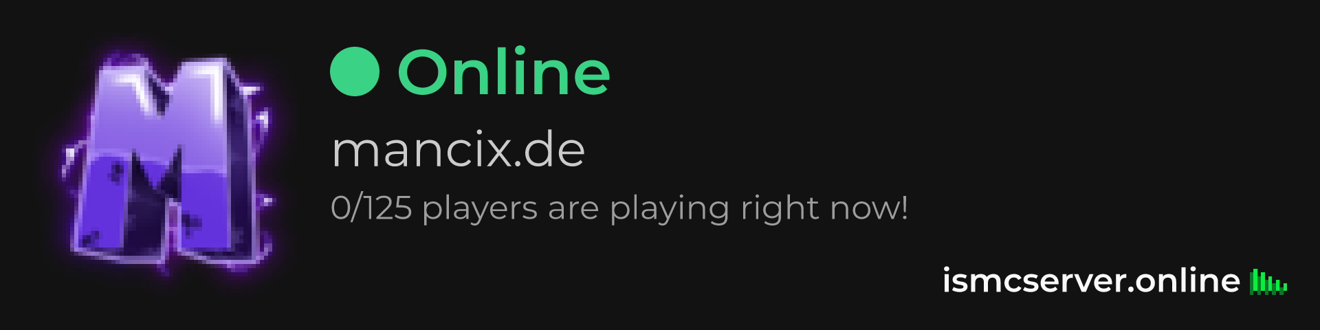 Dark theme: https://ismcserver.online/mancix.de/widget?dark=true