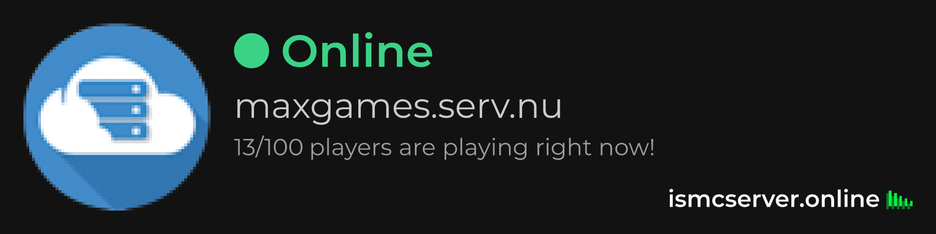 Dark Rounded image: https://ismcserver.online/maxgames.serv.nu/widget?dark&rounded