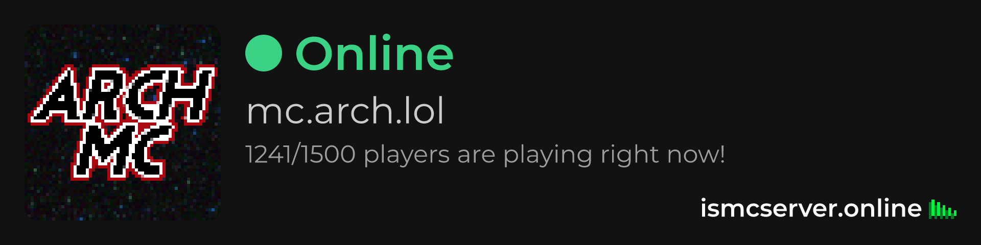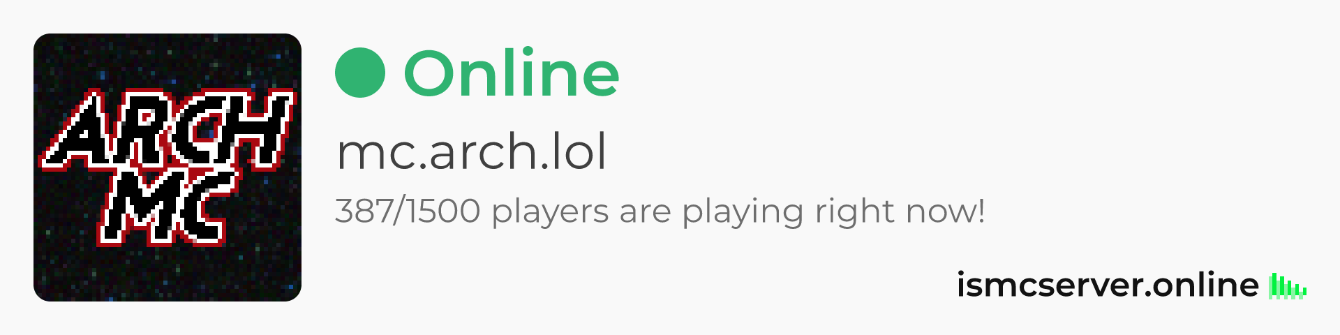 Dark theme: https://ismcserver.online/mc.arch.lol/widget?dark=true