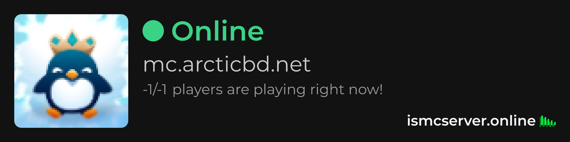 Dark Rounded image: https://ismcserver.online/mc.arcticbd.net/widget?dark&rounded