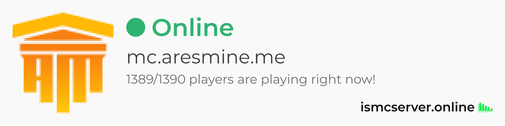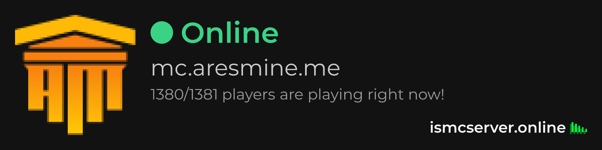 Dark Rounded image: https://ismcserver.online/mc.aresmine.me/widget?dark&rounded