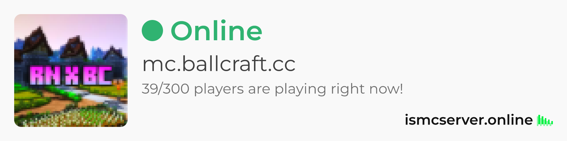Dark theme: https://ismcserver.online/mc.ballcraft.cc/widget?dark=true