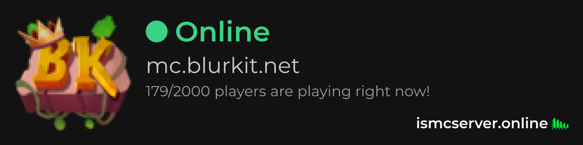 Dark Rounded image: https://ismcserver.online/mc.blurkit.net/widget?dark&rounded
