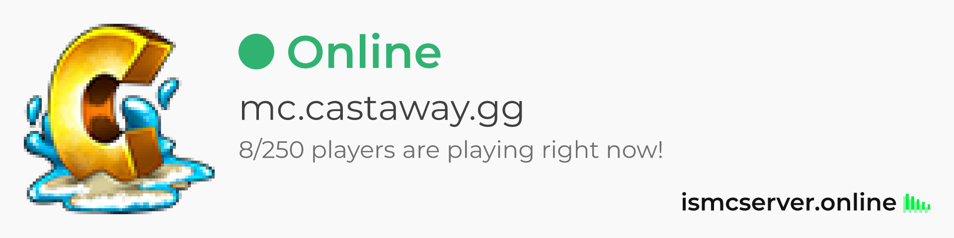 Dark theme: https://ismcserver.online/mc.castaway.gg/widget?dark=true