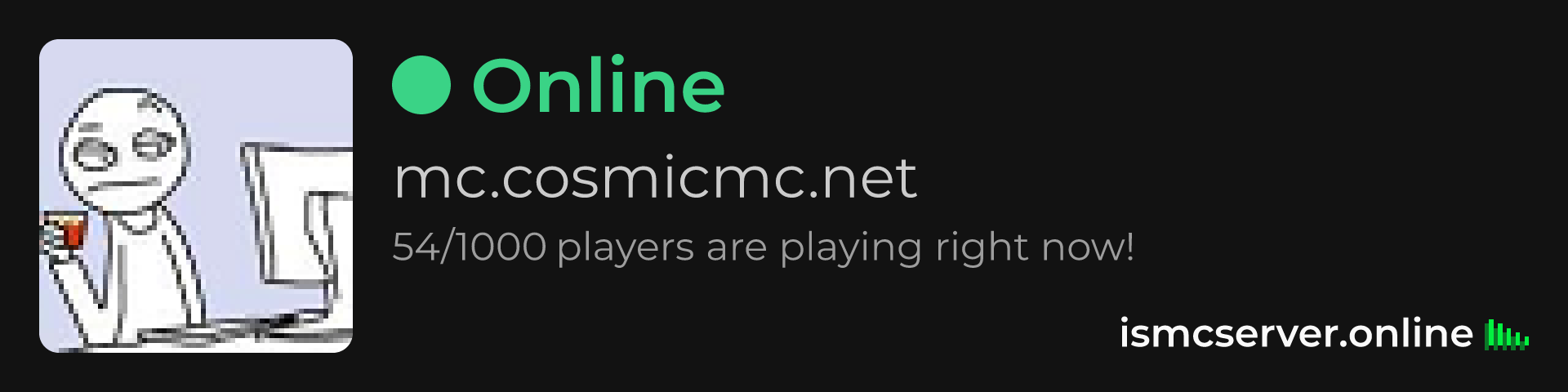 Rounded image: https://ismcserver.online/mc.cosmicmc.net/widget?rounded