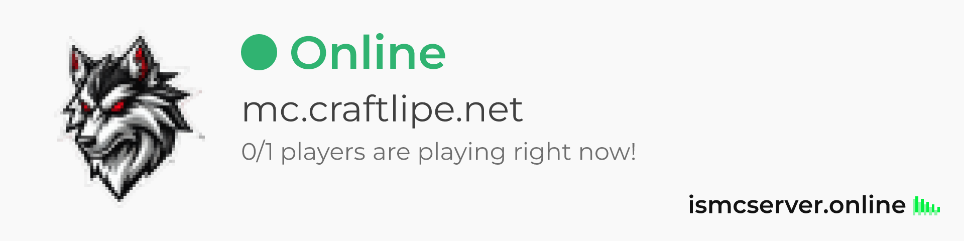 Dark Rounded image: https://ismcserver.online/mc.craftlipe.net/widget?dark&rounded