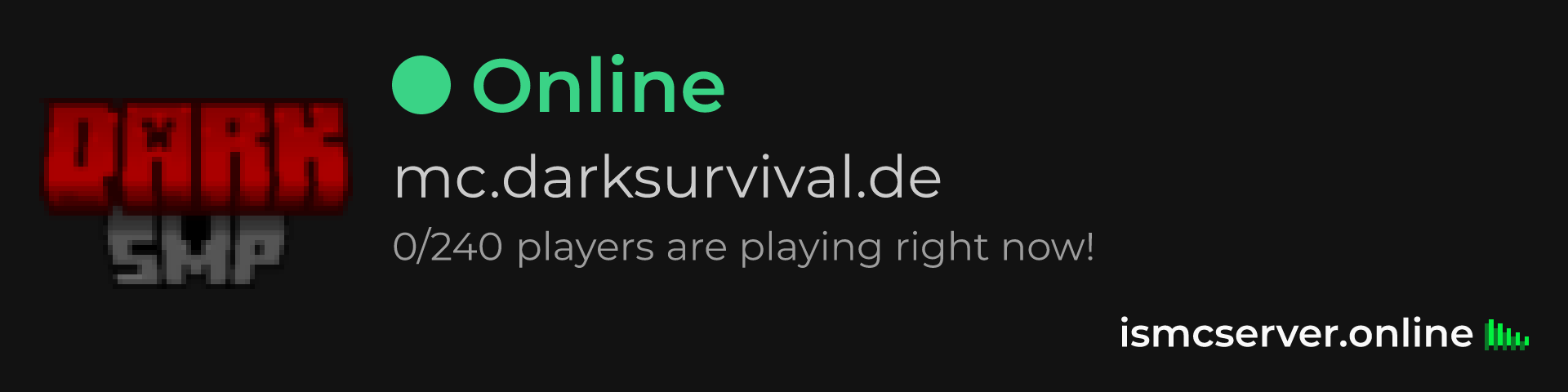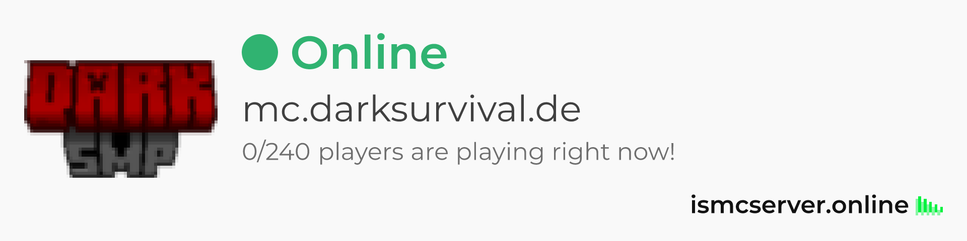 Dark Rounded image: https://ismcserver.online/mc.darksurvival.de/widget?dark&rounded
