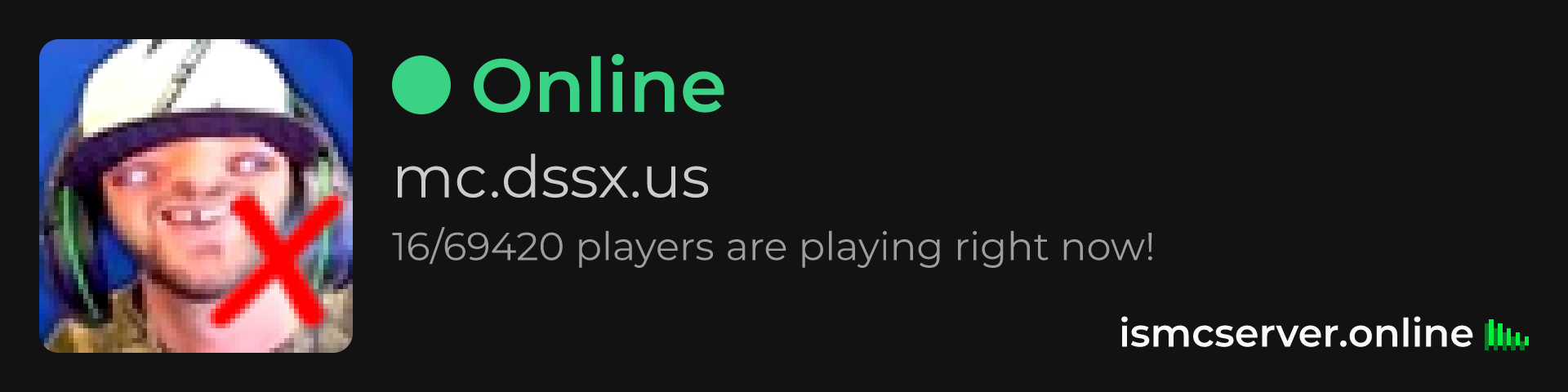 Dark Rounded image: https://ismcserver.online/mc.dssx.us/widget?dark&rounded