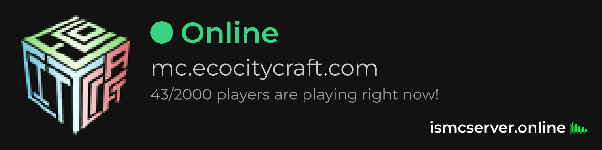 Dark theme: https://ismcserver.online/mc.ecocitycraft.com/widget?dark=true
