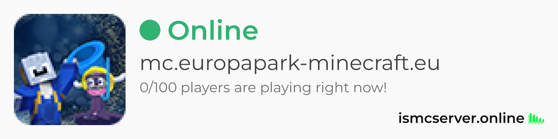 Widgets are accessible for everyone, without needing any token. Simply add /widget at the end of server's url. Like this: https://ismcserver.online/mc.europapark-minecraft.eu/widget.