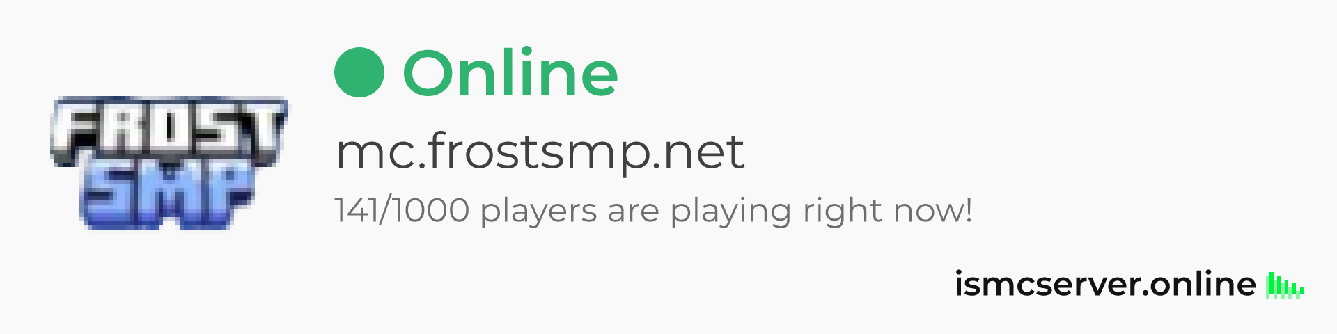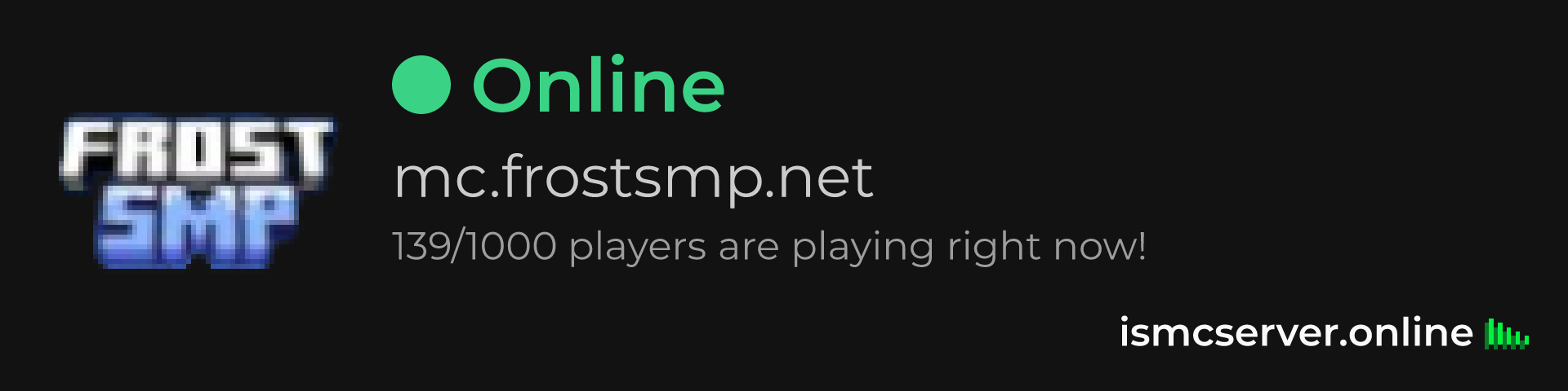 Dark theme: https://ismcserver.online/mc.frostsmp.net/widget?dark=true