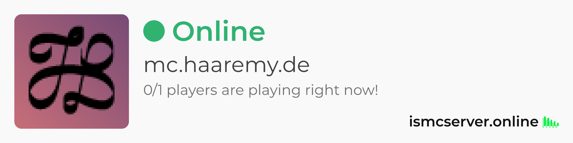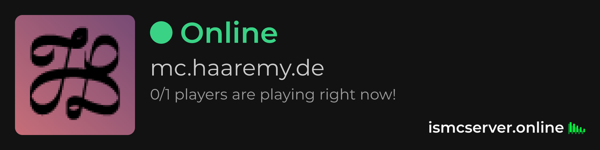 Dark Rounded image: https://ismcserver.online/mc.haaremy.de/widget?dark&rounded
