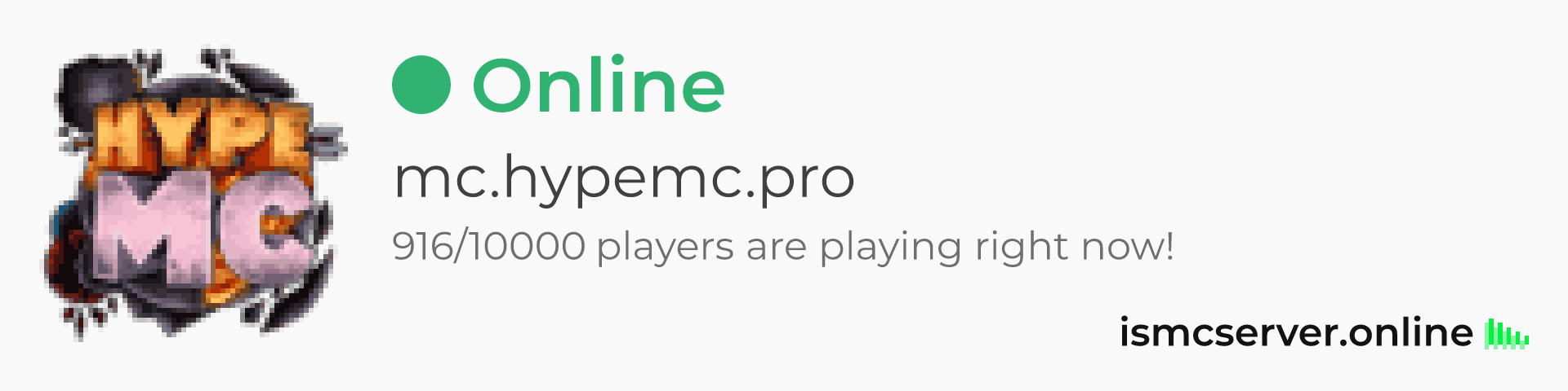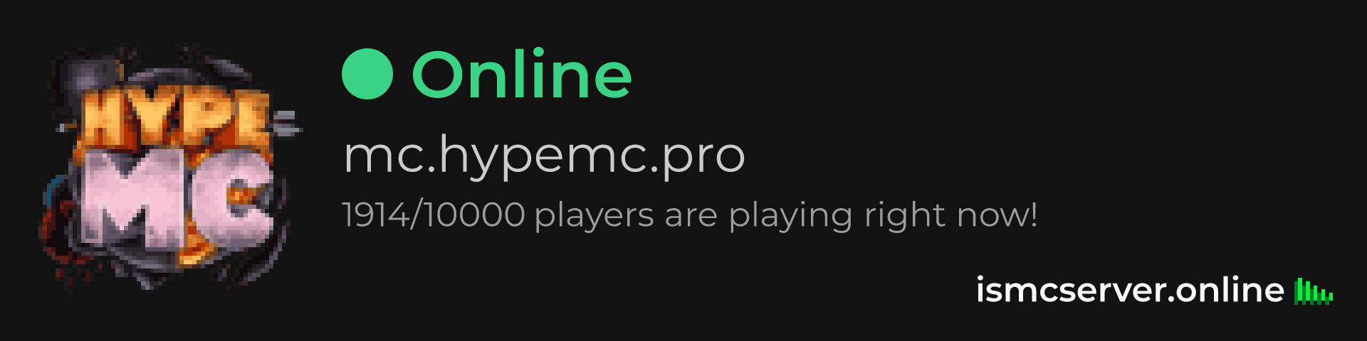 Dark Rounded image: https://ismcserver.online/mc.hypemc.pro/widget?dark&rounded