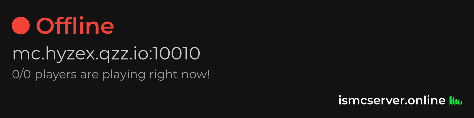 Dark theme: https://ismcserver.online/mc.hyzex.qzz.io:10010/widget?dark=true