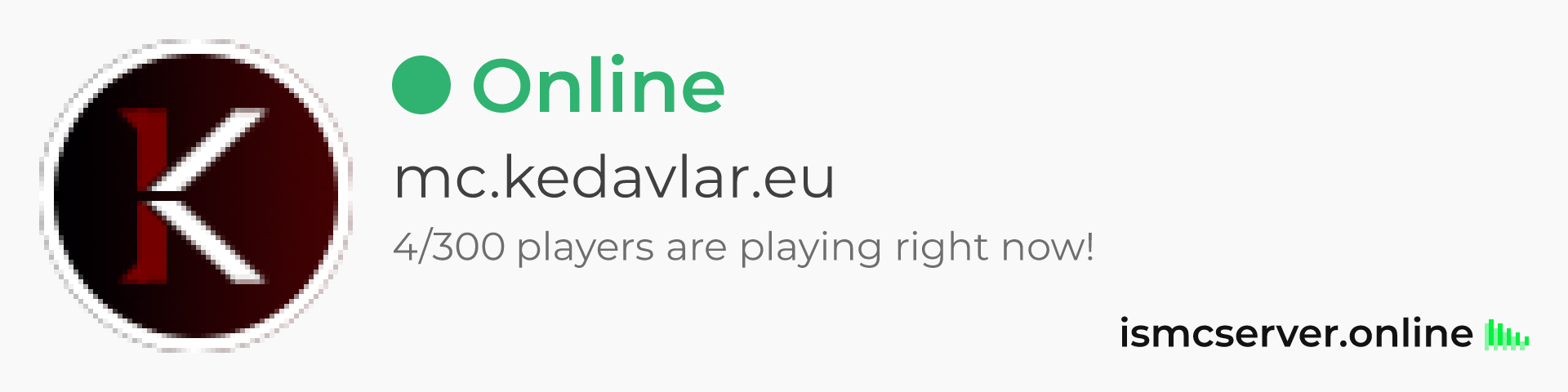 Dark theme: https://ismcserver.online/mc.kedavlar.eu/widget?dark=true