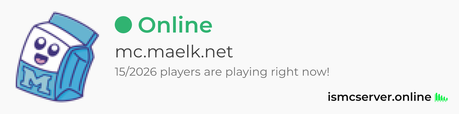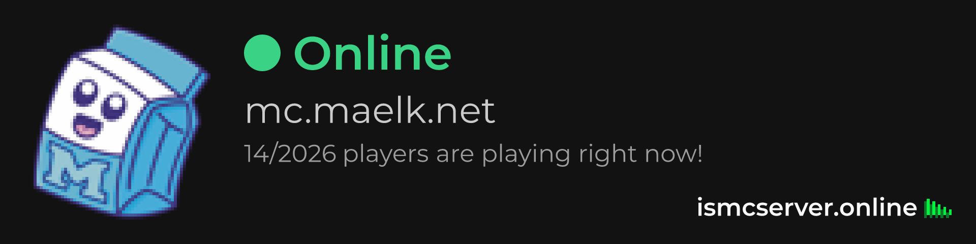 Dark Rounded image: https://ismcserver.online/mc.maelk.net/widget?dark&rounded