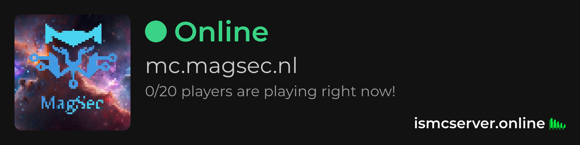 Dark Rounded image: https://ismcserver.online/mc.magsec.nl/widget?dark&rounded