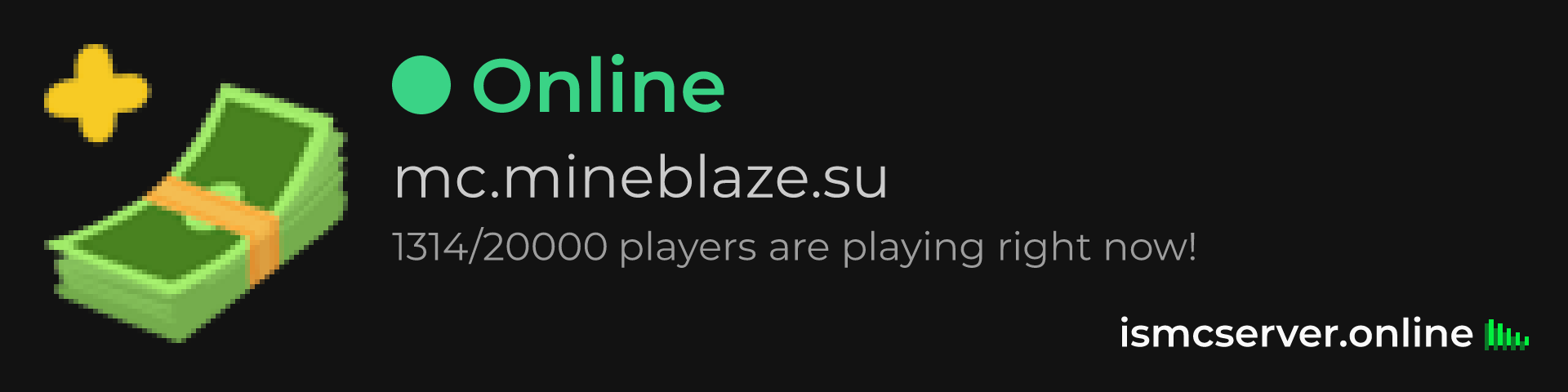 Dark Rounded image: https://ismcserver.online/mc.mineblaze.su/widget?dark&rounded