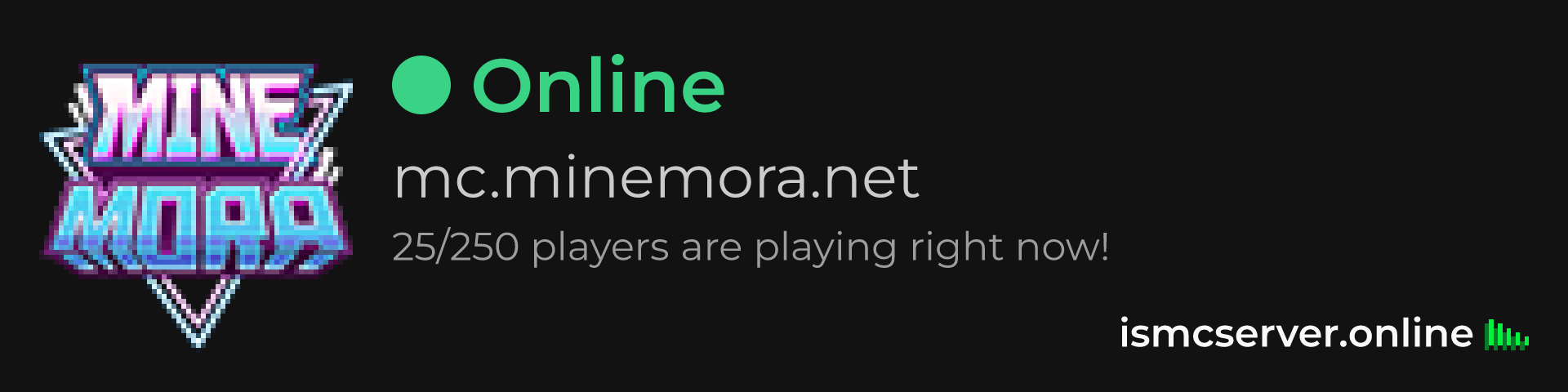 Dark theme: https://ismcserver.online/mc.minemora.net/widget?dark=true