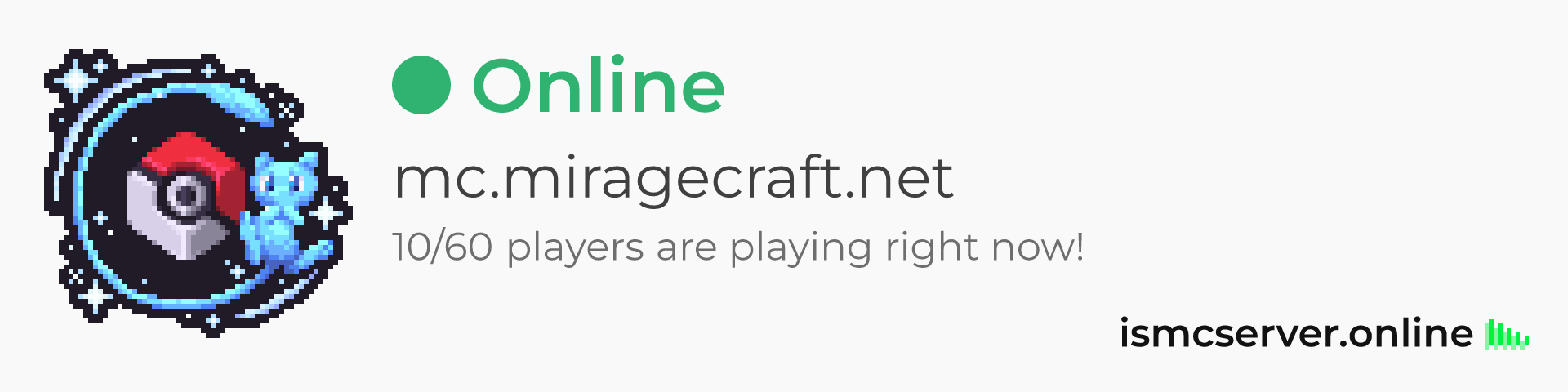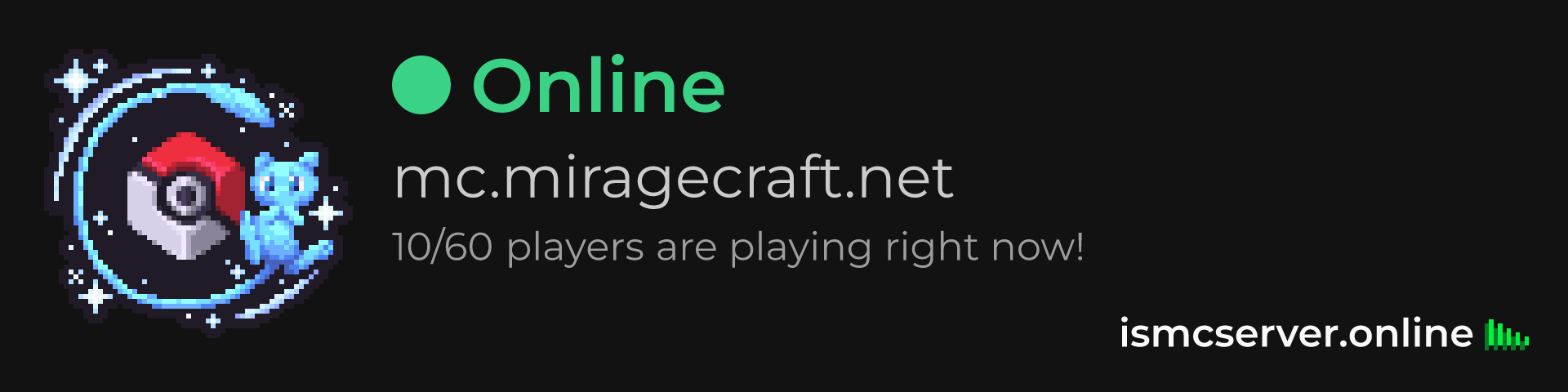 Dark Rounded image: https://ismcserver.online/mc.miragecraft.net/widget?dark&rounded