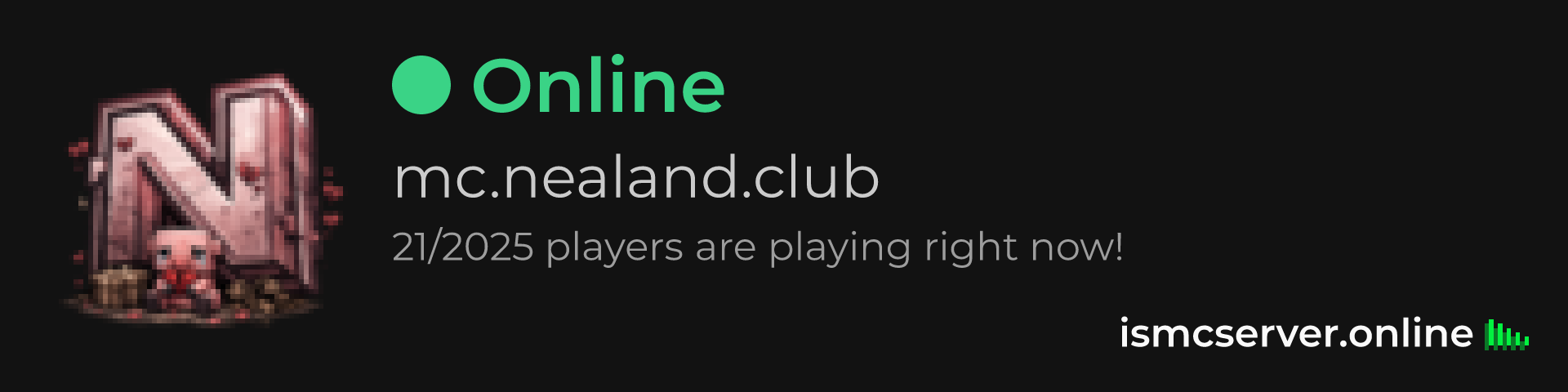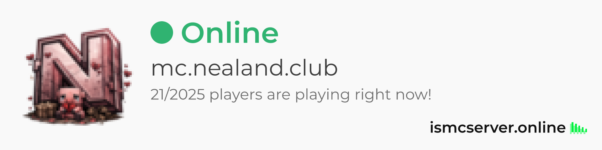 Dark theme: https://ismcserver.online/mc.nealand.club/widget?dark=true