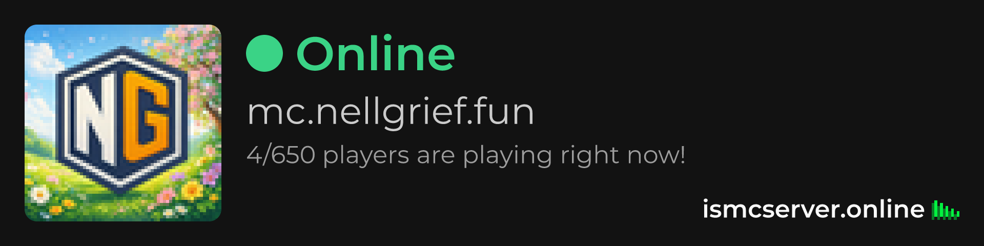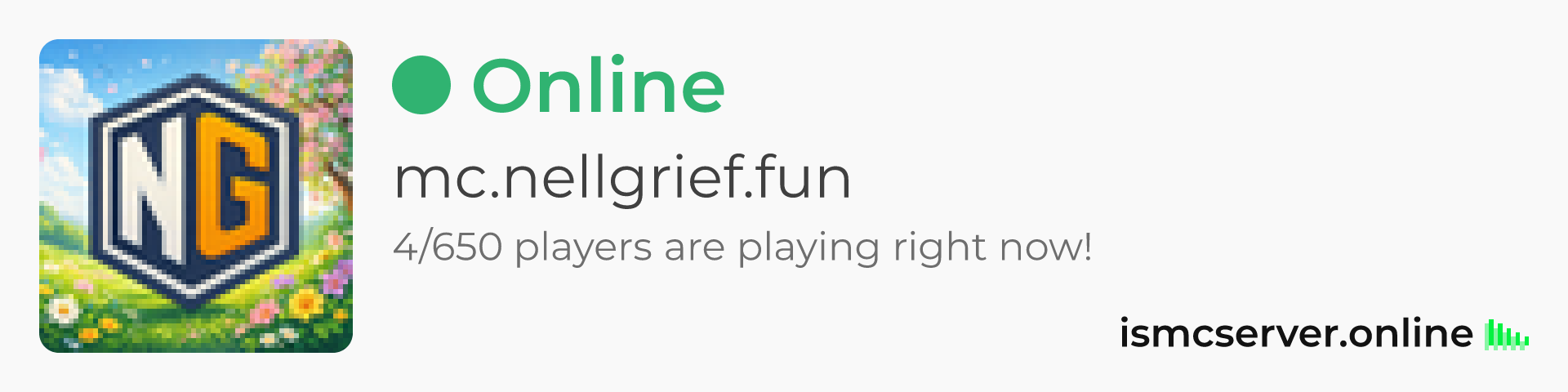 Dark theme: https://ismcserver.online/mc.nellgrief.fun/widget?dark=true