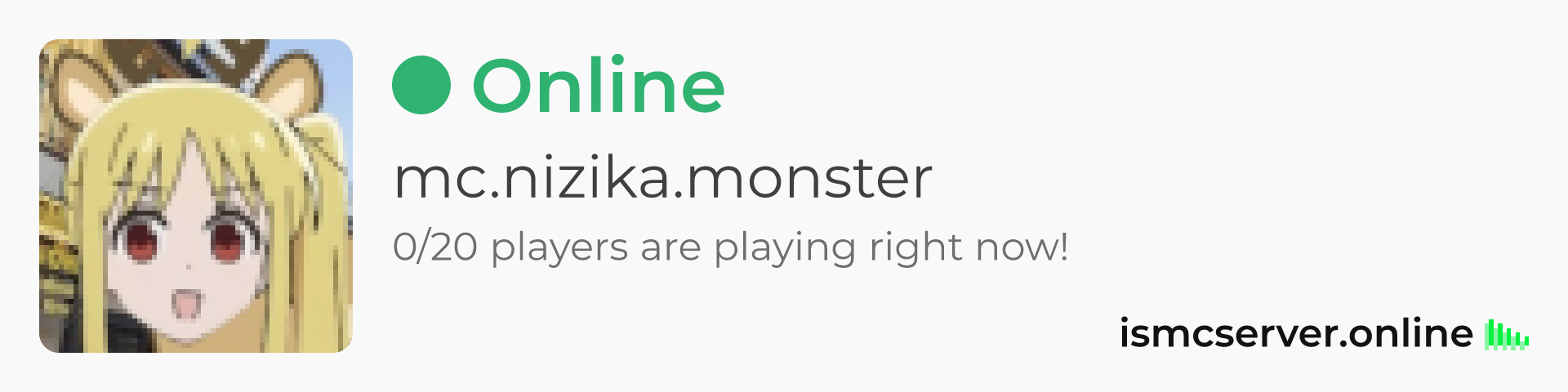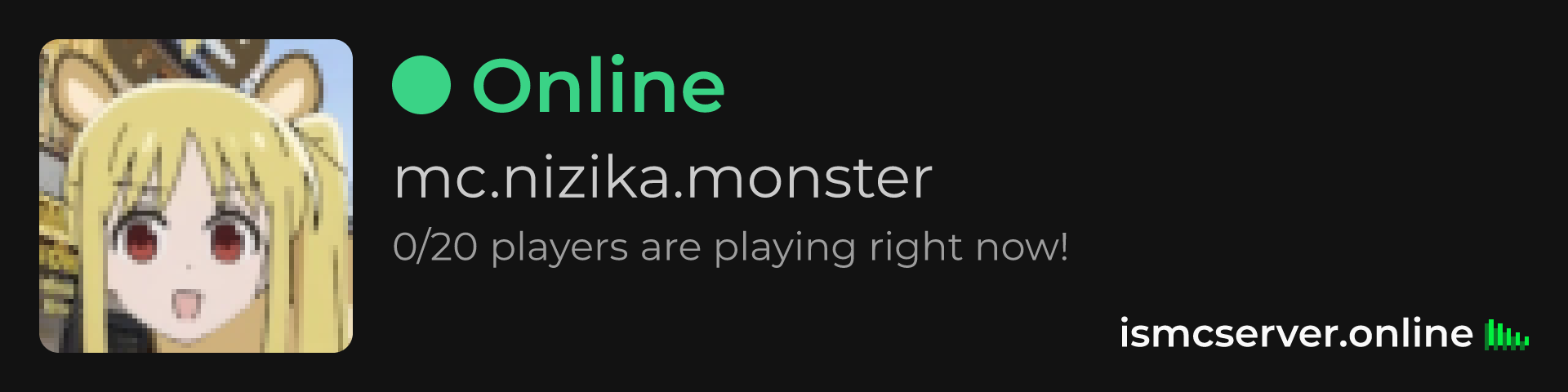 Dark Rounded image: https://ismcserver.online/mc.nizika.monster/widget?dark&rounded