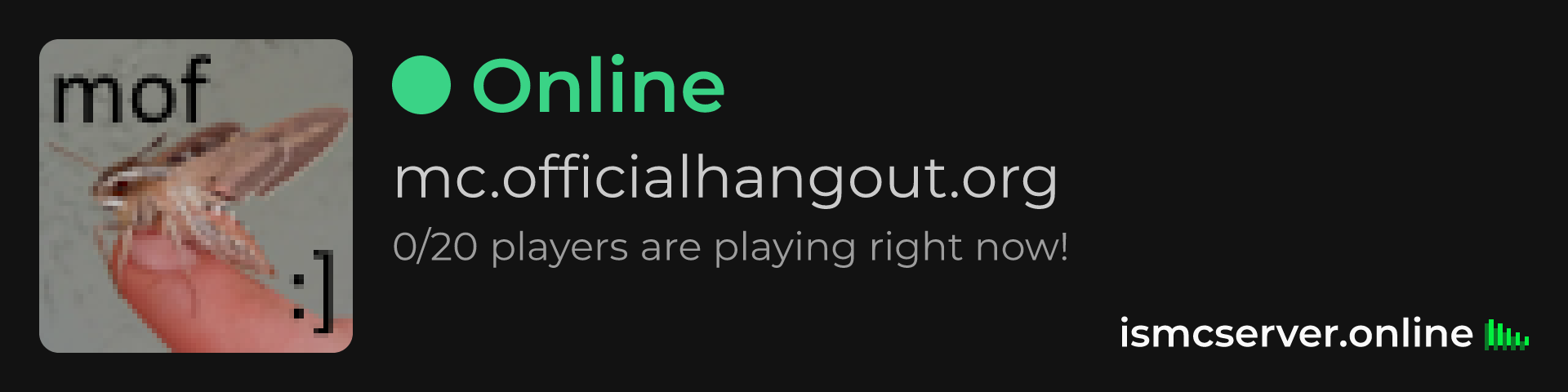 Dark Rounded image: https://ismcserver.online/mc.officialhangout.org/widget?dark&rounded