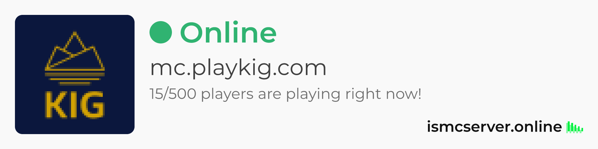 Dark theme: https://ismcserver.online/mc.playkig.com/widget?dark=true