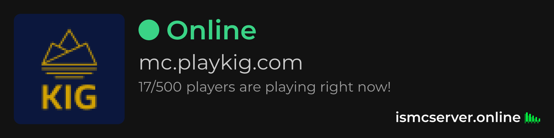 Dark Rounded image: https://ismcserver.online/mc.playkig.com/widget?dark&rounded