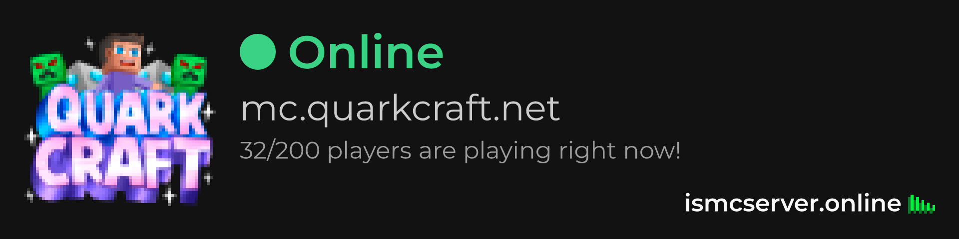 Dark Rounded image: https://ismcserver.online/mc.quarkcraft.net/widget?dark&rounded