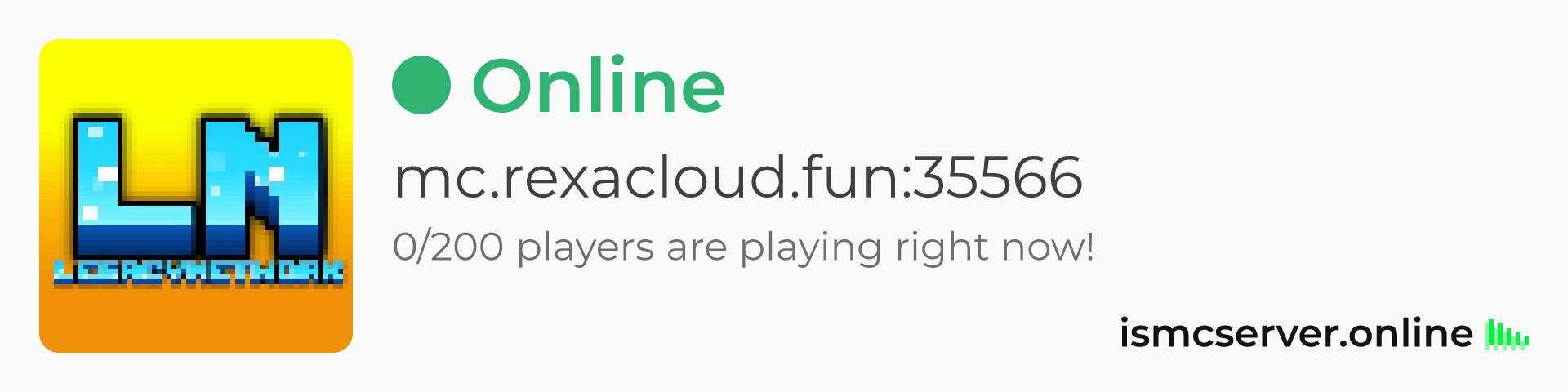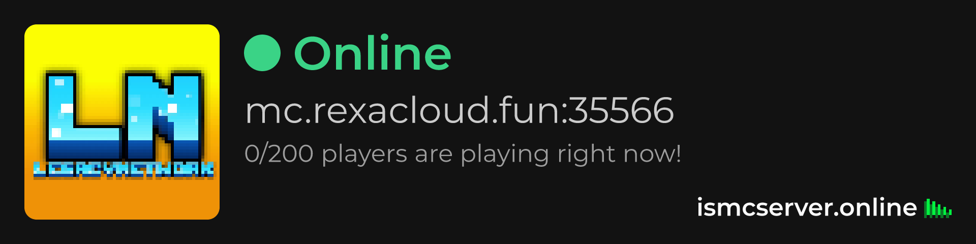 Dark theme: https://ismcserver.online/mc.rexacloud.fun:35566/widget?dark=true