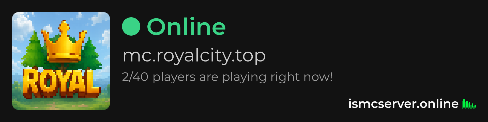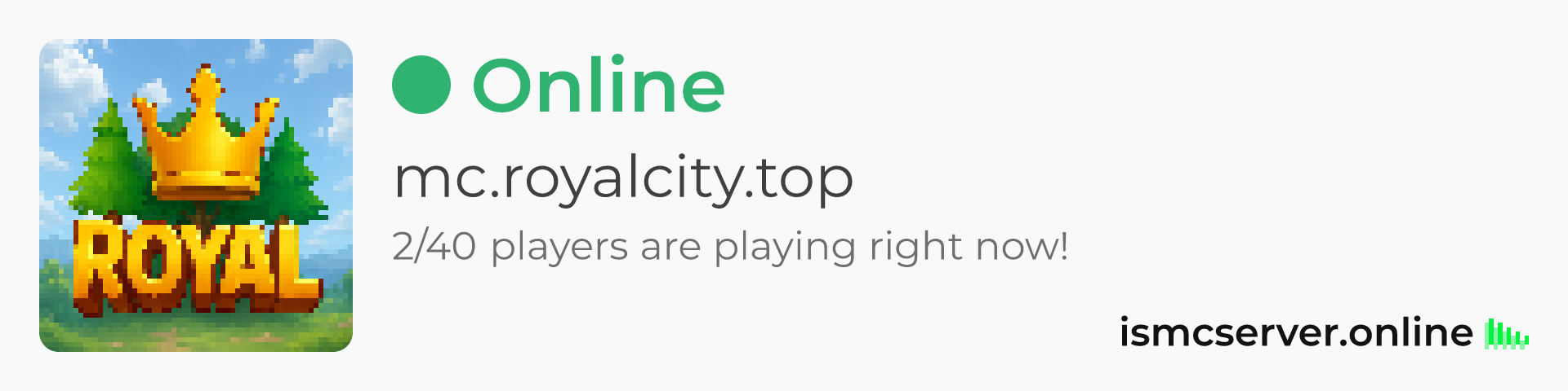 Dark theme: https://ismcserver.online/mc.royalcity.top/widget?dark=true