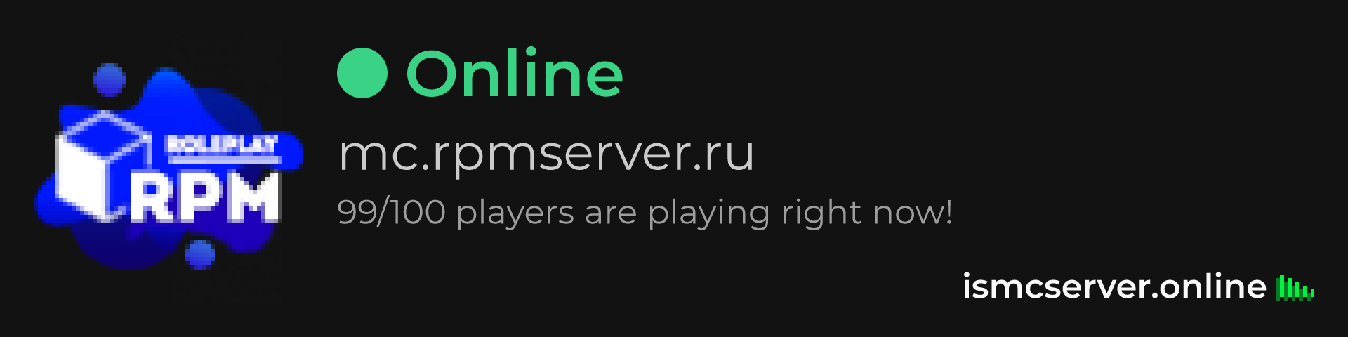 Dark theme: https://ismcserver.online/mc.rpmserver.ru/widget?dark=true