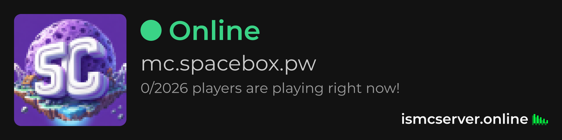 Dark Rounded image: https://ismcserver.online/mc.spacebox.pw/widget?dark&rounded